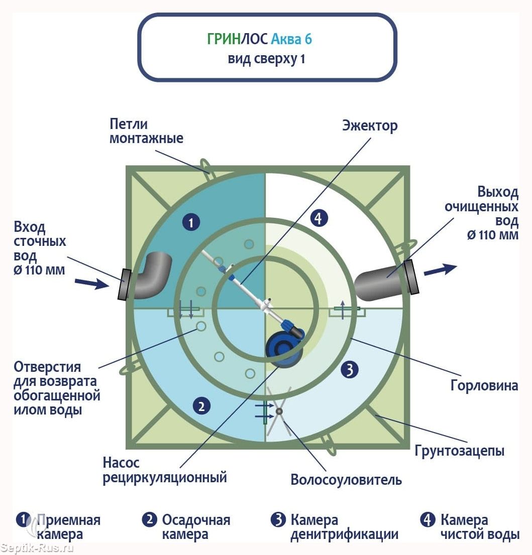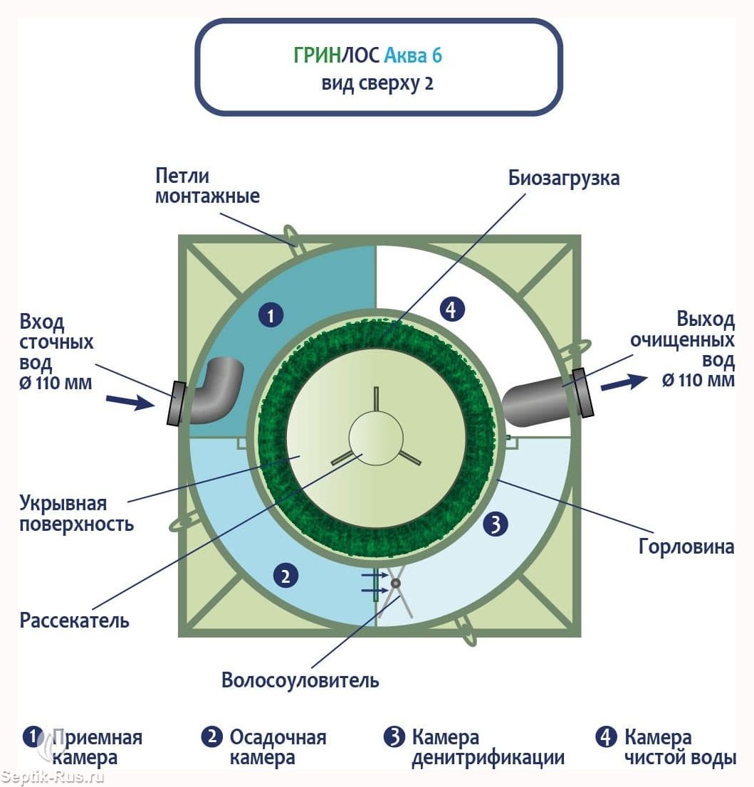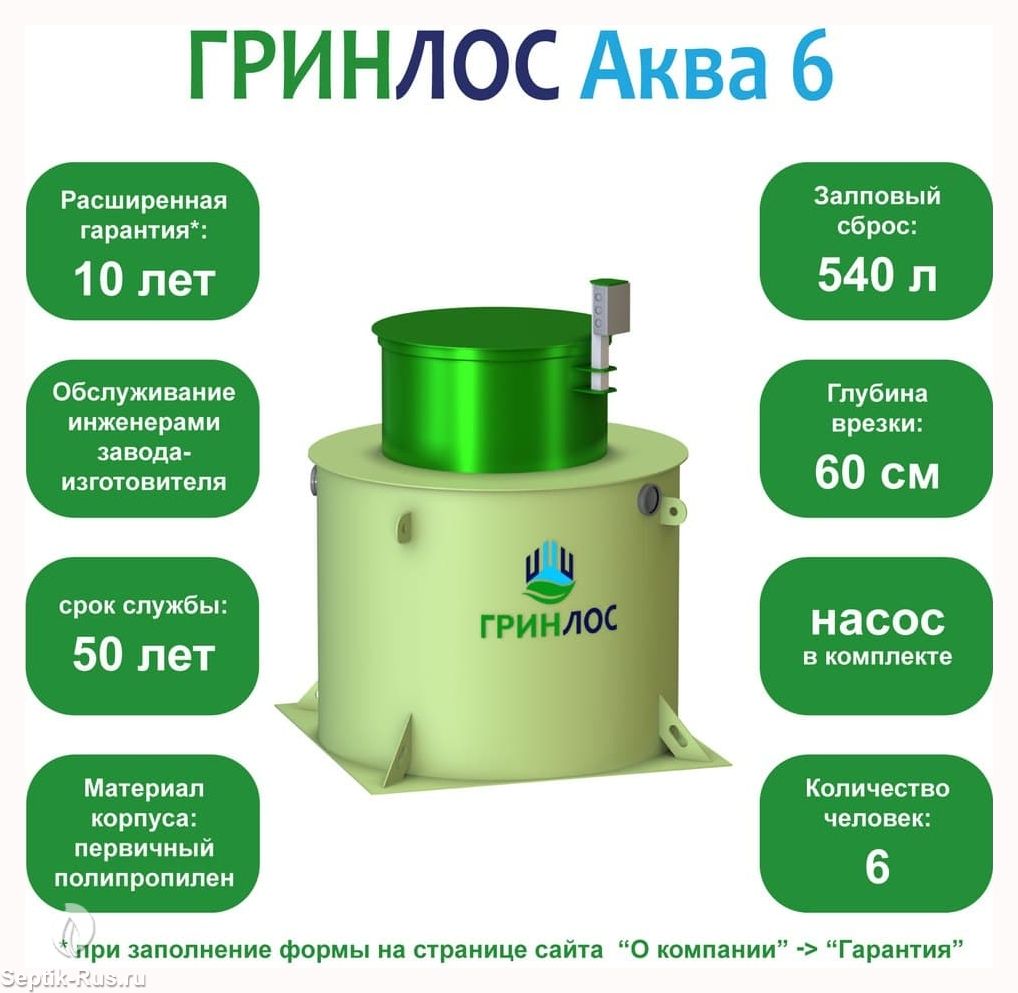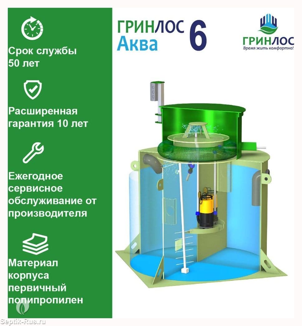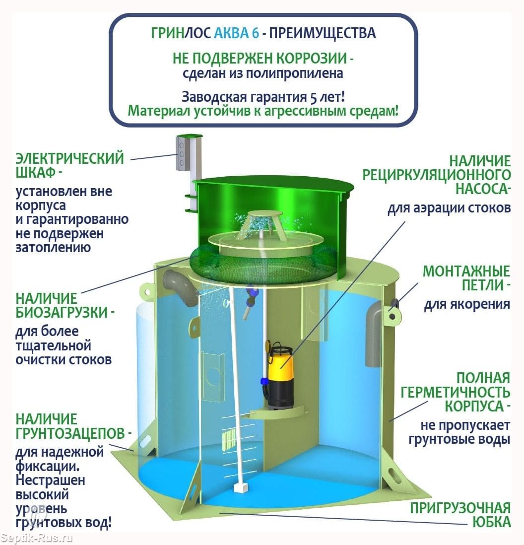 Отличительными особенностями септика ГРИНЛОС Аква 6 являются: