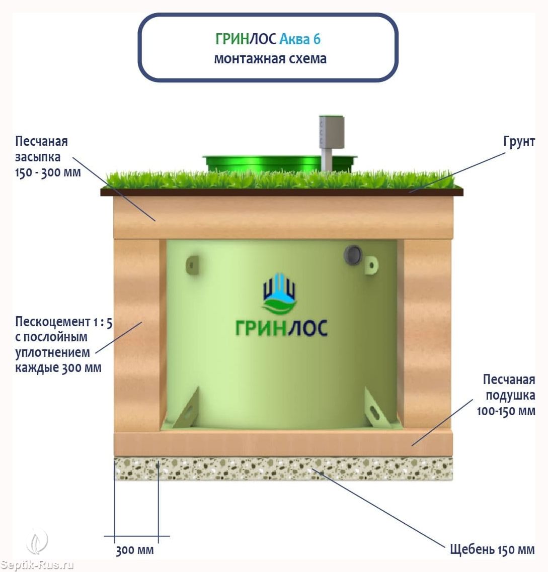Доставим и установим септик ГРИНЛОС Аква 6 за 1 день по цене ниже конкурентов и скидкой на монтаж до 29%. Звоните!